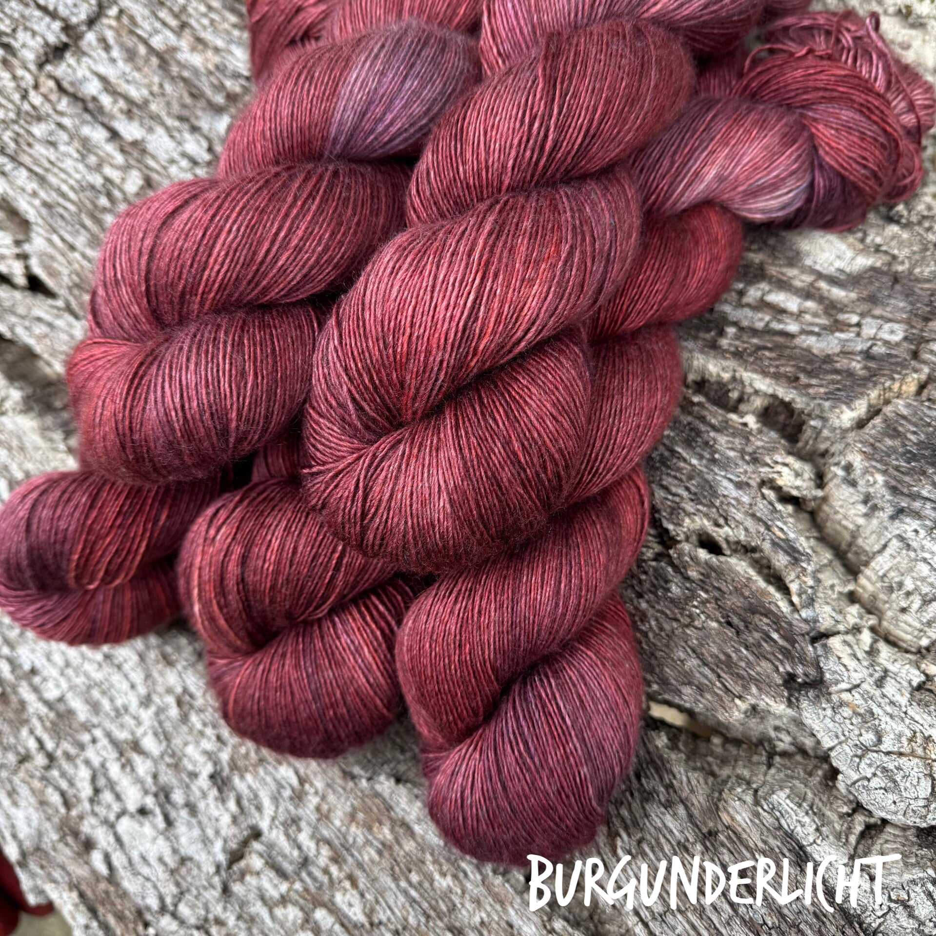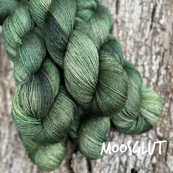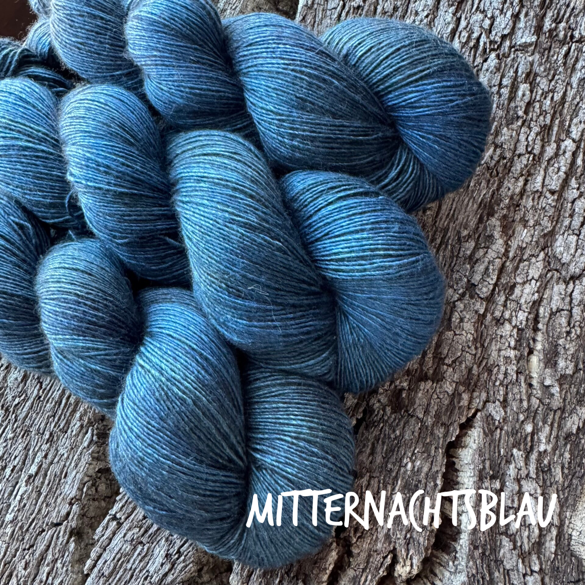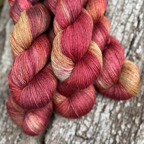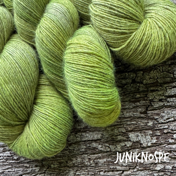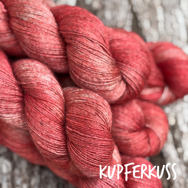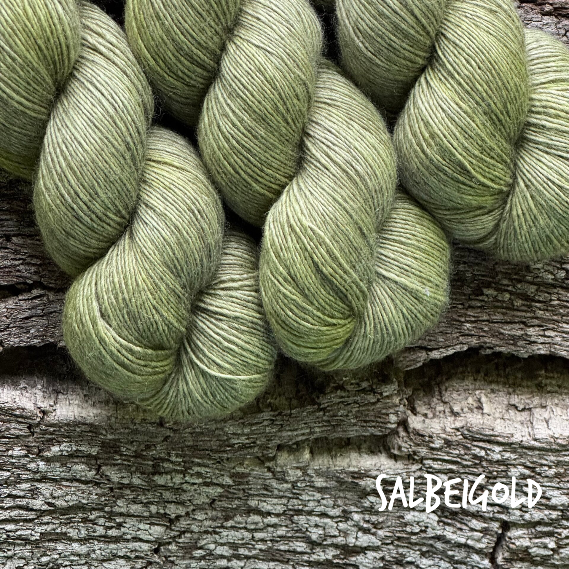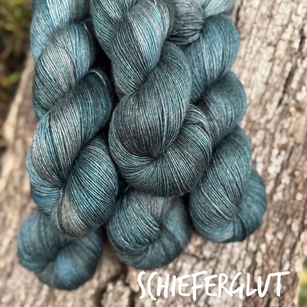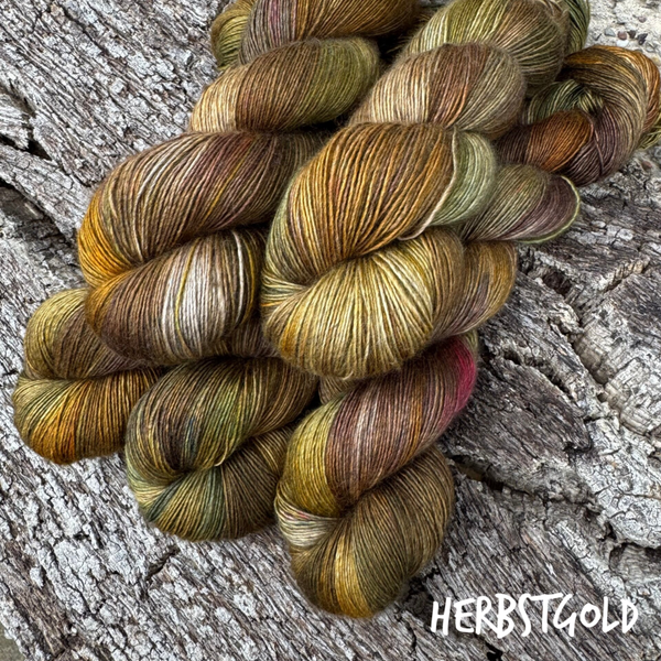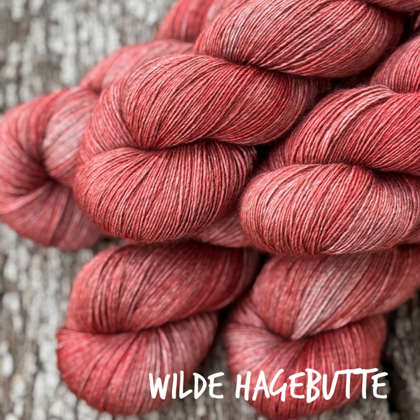 Handgefärbte Garne sind immer Unikate, auch wenn sie zusammen gefärbt wurden, sieht jeder Strang anders aus. Bei größeren Strickstücken mit 2 Strängen arbeiten.