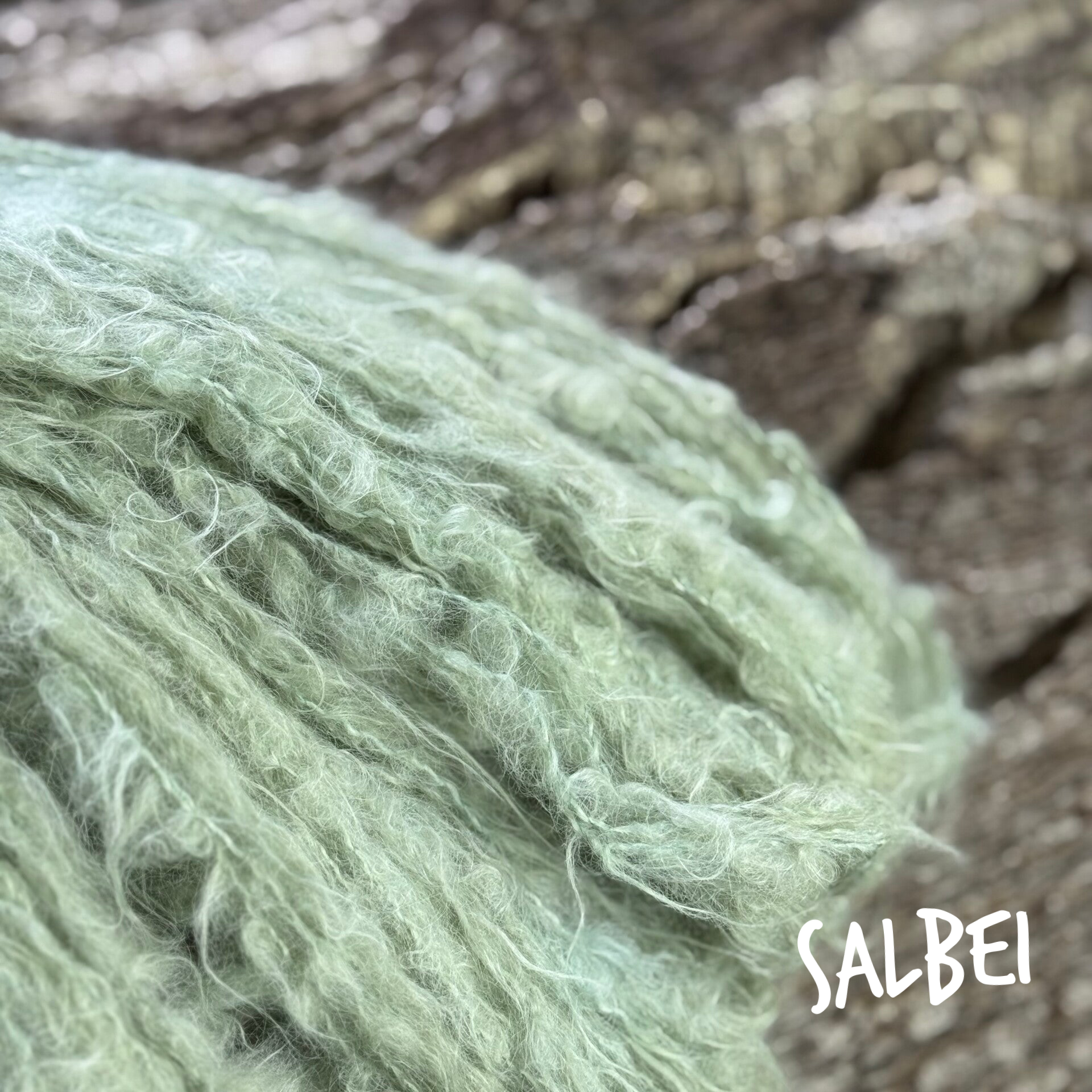 Wolkenweich- man muss es einfach fühlen. 225m pure Wolkenwolle . Perfekt für warme,weiche Winterprojekte … Pullis mit großer Nadel gestrickt, ergeben coole Statements... einfach drüber und fertig . Cowls, Schals , Mützen sind sofort das IT Piece. Lassen Sie ihrer Fantasie freien Lauf- Sie werden von dieser Wolle begeistert sein! Einige Stränge sind schon gewickelt -sie nehmen einfach zu viel Platz ein ..
