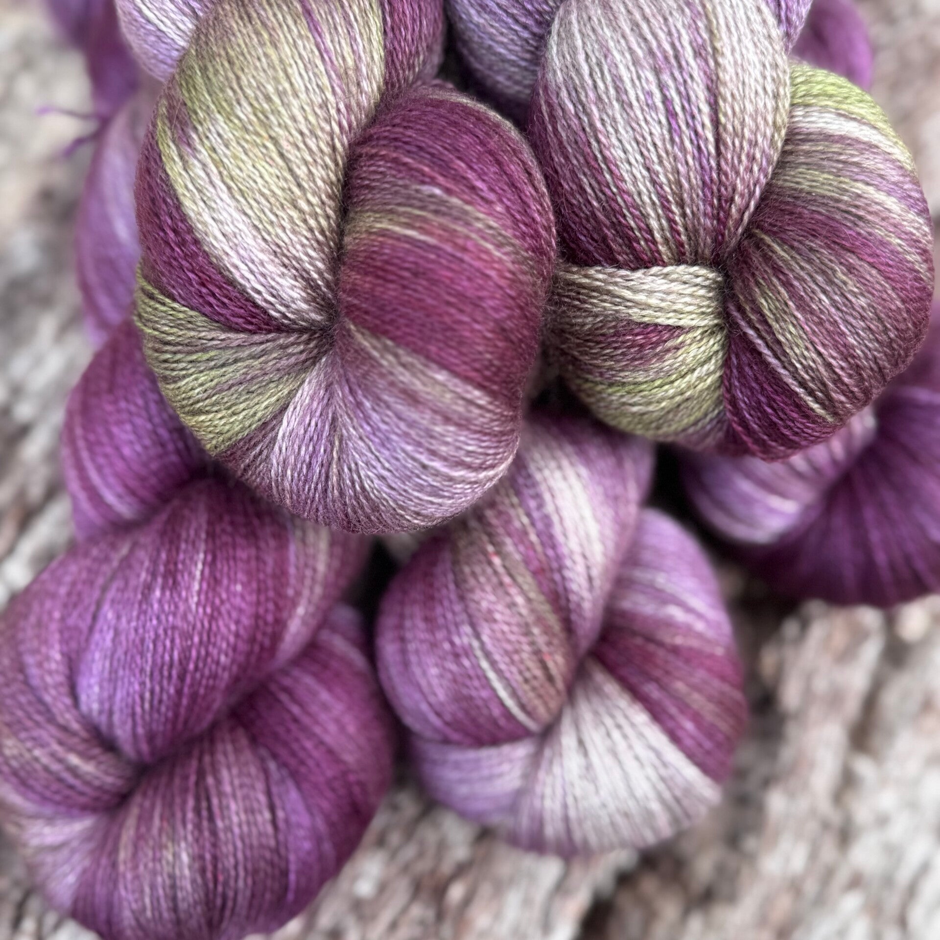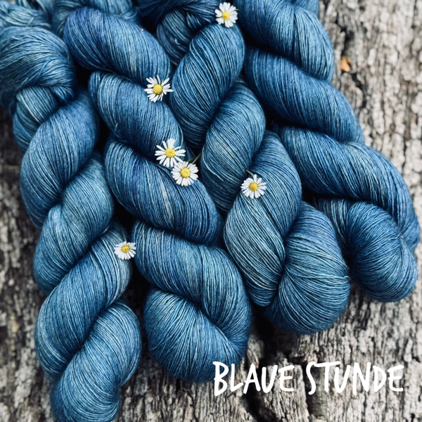 Handgefärbte Garne sind immer Unikate, auch wenn sie zusammen gefärbt wurden, sieht jeder Strang anders aus. Bei größeren Strickstücken mit 2 Strängen arbeiten.